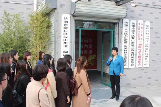 在三涧溪村党群活动中心,村党支部书记高淑贞向大家介绍了党支部带领全村党员和全体村民抓党建促发展的经验。村党支部通过抓好关键少数,强化“三会一课”,班子团结拧成一股绳,借势借力促发展,先后被授予全国和山东省“民主法治示范村”“全国平安家庭创建先进示范单位”“山东省平安建设先进基层单位”“山东省绿化示范村”"等多项荣誉称号。