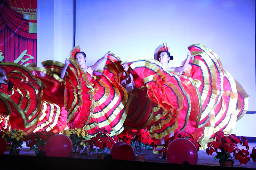 舞蹈《民族大联欢》,各少数民族舞者洋溢着灿烂的笑容,加上曼妙的舞姿,飘逸的长发,还有独具民族魅力的舞蹈动作,引得全场的阵阵喝彩。