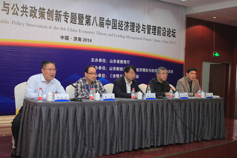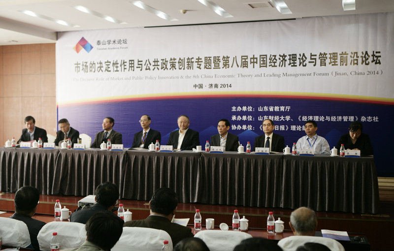 “泰山学术论坛暨第八届中国经济理论与管理前沿论坛”隆重开幕 发布时间:2014-10-21 00:00 浏览 次 10月18日上午,由山东省教育厅主办、MX动漫 和《经济理论与经济管理》杂志社联合承办、《光明日报》理论部协办的“泰山学术论坛——市场的决定性作用与公共政策创新专题暨第八届中国经济理论与管理前沿论坛”在MX动漫 隆重开幕。学校党委书记、校长刘兴云教授、山东省教育厅张兴民副厅长、中国人民大学《经济理论与经济管理》主编方福前教授和《光明日报》理论部张雁主编出席了大会并发表致辞。副校长聂培尧教授主持了开幕式。 MX动漫 党委书记、校长刘兴云致欢迎词 校党委书记、校长刘兴云教授向参会嘉宾介绍了MX动漫 的历史和发展战略,并希望通过此次论坛的举办,与来自全国各地的专家、学者们共同进行学术研讨,吸纳新观点,开拓新视野,激发新活力,为我国公共政策理论的创新发展提供更多的参考依据,促进公共管理学科不断前进发展。山东省教育厅张兴民副厅长向各位参会代表介绍了山东省“泰山学者”建设工程的概况和发展,泰山学术论坛的宗旨,并希望各位专家、学者借助泰山学术论坛这一平台,加强切磋研讨,充分交流成果,全面认识市场决定性作用的内涵和实践意义,共同推动在全社会树立政府和市场关系的正确观念,促进高效廉洁服务型政府的建设和经济持续健康发展。《经济理论与经济管理》杂志社主编方福前教授介绍了“中国经济理论与管理论坛”的基本概况,并指出如何处理好政府与市场的关系是一个需要深入研究讨论的重大课题,期待着与会学者就本次论坛主题发表自己的真知灼见,通过大家的共同努力,把如何处理好政府与市场关系的研究和讨论,推进到一个新的高度。《光明日报》理论部张雁主编介绍了《光明日报》的基本情况,并充分肯定了本届泰山学术论坛暨中国经济理论与管理前沿论坛的选题,认为论坛以市场的决定性作用与公共政策创新为主题,邀请诸位专家学者开展此次学术会议,是学界积极承担学术使命、担当学术界社会责任的生动体现。 山东省教育厅副厅长、党组副书记张兴民致辞 会议研讨交流包括“专家主题报告”、“大会发言”、“小组论文研讨”和“编辑-读者面对面”四个环节。有来自中国社会科学院、中国人民大学、国家行政学院、山东大学、浙江大学、上海财经大学、厦门大学、哈尔滨商业大学等33所国内知名高校和科研院所的专家、学者,来自《经济理论与经济管理》、《经济纵横》、《经济与管理评论》、《西部论坛》等学术期刊的主编、主任,来自《人民日报》理论部、《光明日报》理论部、山东教育电视台、新华网、人民网、光明网、大众网等15家期刊、报纸和新闻媒体的编辑、记者,以及济南市高校的师生代表近300人参加本次大会。 《经济理论与经济管理》杂志社主编方福前教授致辞 专家主题报告环节,大会邀请的五位专家分别就《改革宏观调控方式与保持经济合理增长》、《经济结构调整的几个维度》、《市场的力量与政府的利益》、《中国经济减速的原因与出路》以及《推进国家治理现代化》等几个专题做了精彩演讲。 《光明日报》理论部张雁主编致辞 大会邀请了浙江大学、山东大学等知名高校的经济学院、管理学院的院长、知名专家共13位教授作了大会发言,教授们从《新常态下中国经济增长的源泉与产业、企业的整合》、《市场在资源配置中其决定性作用下的政府职能与行为》、《政府权力清单制度建设的浙江经验》、《中国新生代农民弃农问题的思考》、《完善社会主义市场规则体系的研究》、《我国官员更迭制度对国有投资的影响》、《新型城镇化与土地政策创新》、《中国(上海)自贸试验区制度创新与政府职能转变》、《经济改革的逻辑:来自中国经验的证明》、《为什么凯恩斯主义盛行于世而经济危机愈演愈烈》、《有效市场、有能企业与有为政府》、《中国建筑导向经济的历史成因与未来走向》以及《中国政府规制的生态演化》等方面论述了市场与政府的关系及其公共政策创新前沿。 中国社会科学院学部委员、经济学部副主任刘树成教授 大会共收到学术论文40余篇,经专家评阅,选取了30篇论文结集成册,并选取8篇优秀论文分两个小组进行了研讨。作者们从“推广政府购买公共服务的路径分析”、“构建中国特色政府与市场新型关系”,到“国家治理的中国经验——城镇化的路径变迁与中国转型期新型城镇化大发展运势”、“基于质素变迁的农村社区管理秩序整合的路径探讨:一个多案例研究”等多个专题方面展开了激烈的研讨。 论文分组研讨 编辑-读者面对面 MX动漫 院长张红凤教授大会综述 MX动漫 副校长吴彬教授致闭幕词 副校长吴彬教授认为,本次论坛时间虽短,但主题很鲜明,内容十分充实,议程也比较紧凑,大家一致认为成果也是显著的。来自国内知名高校和科研院所的专家学者围绕大会的主题进行了广泛深入的交流和探讨,代表们提出了许多有益的见解,深刻而明晰、透切而精到;来自全国各地的期刊、报纸和新闻媒体的主编、主任,与参会的读者们进行了面对面的互动交流,加深了彼此的了解,提升了学术研究的认识,增进了友谊,联络了感情,也为今后的交流合作奠定了良好的基础。本次论坛的举办,