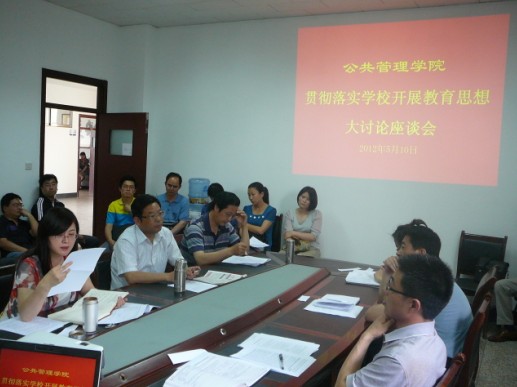 实际,此次讨论主要围绕十个中心议题来展开:(1)在高等教育大众化的背景下,如何确立教学工作的中心地位,树立正确的教育观、教学观、学生观、质量观,全面提高教育质量?(2)如何加强学生思想政治教育,提高班级建设质量,形成合力育人机制?(3)学校(学院)服务国家基础产业和经济社会发展的主要作为在哪里?如何拓展公共管理学科的发展?如何深化社会服务、进一步推进产学研用相结合?(4)如何体现以师生终身发展为本,进一步调动师生积极性主动性?如何进一步整合人力资源,建设高水平师资队伍?(5)如何认识和理解师德的内涵,师德建设与个人修养、学生培养的关系?如何在教学与管理实践中不断加强师德修养?(6)如何理解校训、校风和作风、教风、学风的重要意义?如何推进作风、教风、学风“三风”建设取得更大成效?(7)如何理解办学定位、办学特色、发展目标和办学思想的内涵?怎样培育大学精神,加快校区间文化融合,加强校园文化建设?(8)如何提高育人质量为核心的内涵建设,在教学与管理工作实践中凸显办学质量和培育办学特色?(9)在推动学科转型、改革人才培养模式等实践中,如何体现并实现学校的办学定位、办学思想和人才培养目标?(10)如何在依法治校的基础上,完善内部管理体制机制,推进校院二级管理,建设高水平财经大学?