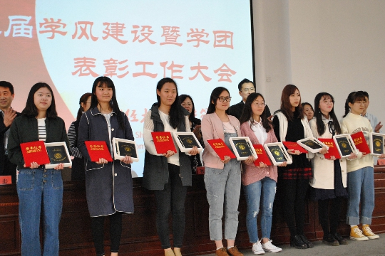 在明水校区5201召开了第三届学风建设暨学团工作表彰大会。院长张红凤、党委书记李国强、学生处副处长孙丽华、党委副书记周炎、团委书记王恩娟、辅导员李昭娜、张辉出席了会议。2016级学生代表以及2017级全体新生参加了此次会议。