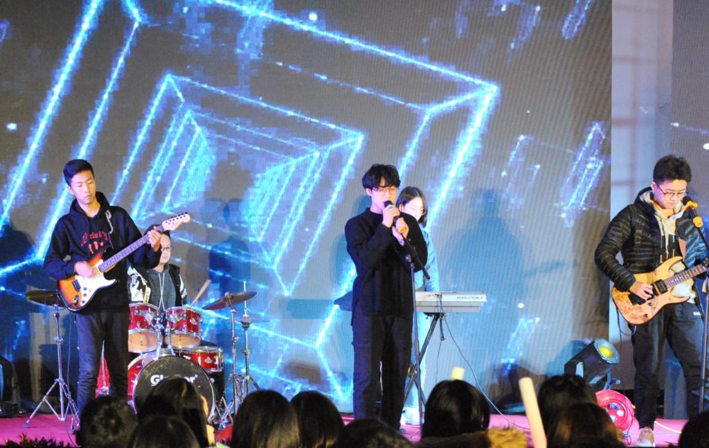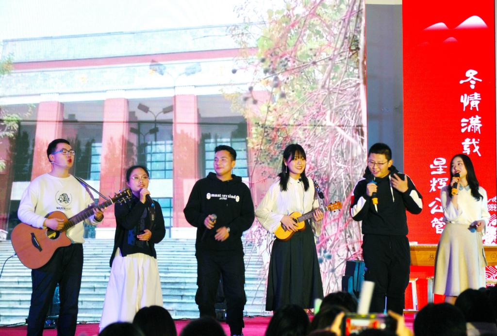 晚会开启第一篇章,初遇公管·怦然。怀着憧憬与希望,我们踏入了大学的校门。何其幸运,与你相遇。学院特邀北海乐队带来《红日》、《都选c》,乐队特有的激情魅力令观众沉醉其中。古典舞《采薇》舞姿清灵、衣袖飘飞,如花间飞舞的蝴蝶,极具古典韵致。随后,吕晓燕副书记带来原创诗朗诵《山东财大 与你同行》,老师对学院的拳拳深情寓于其中。小合唱《幸运遇见 慢慢喜欢》与上相呈,表达了大一学生初遇公管的喜悦与感动。