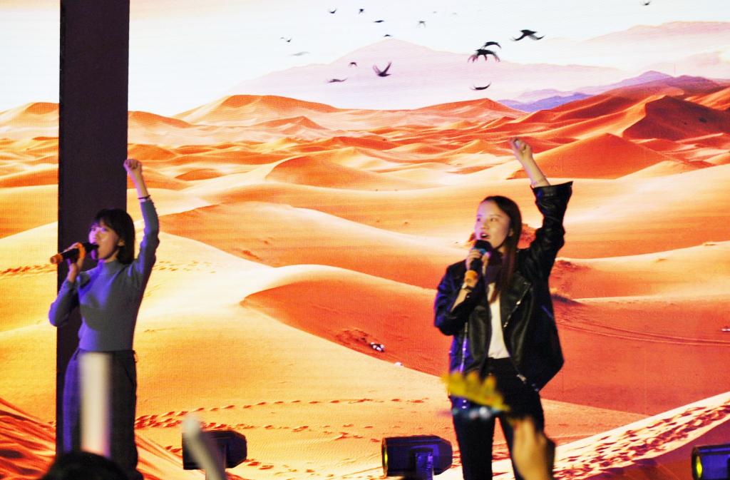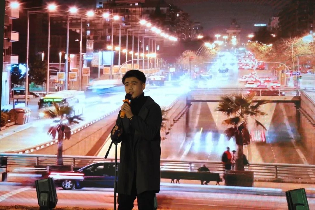 辅导员韩步彤老师携手管科院辅导员邹冲为大家带来精彩演唱《沙漠骆驼》,动听的歌声和热情的互动,将晚会的气氛推向高潮。