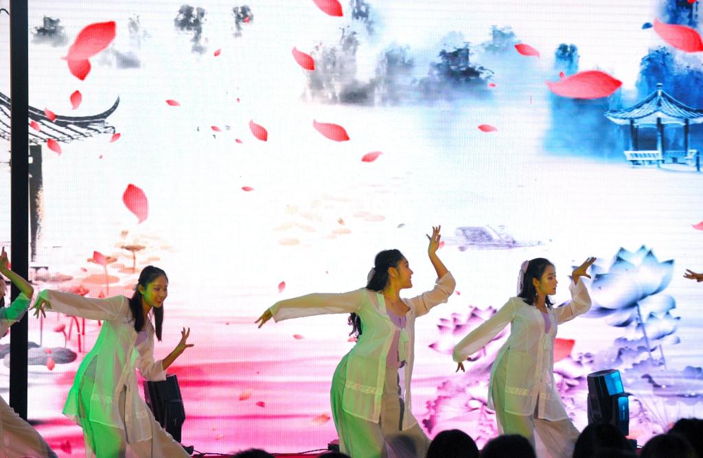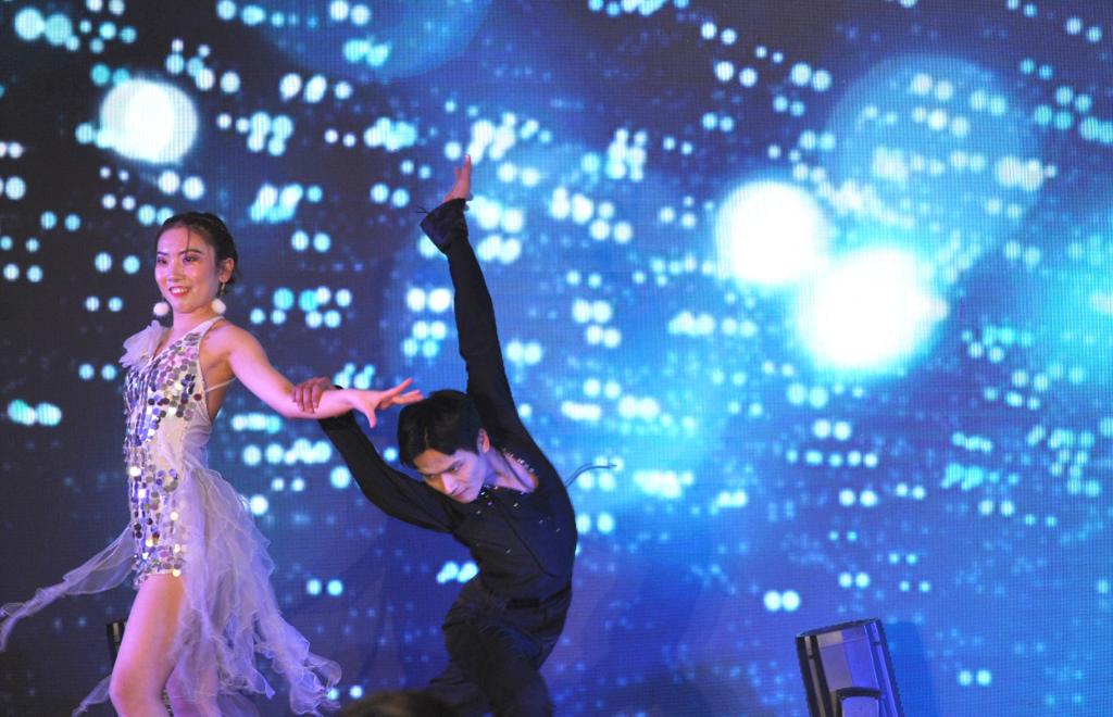晚会的第二篇章,青春公管·丰翼。大学是起点、是成长、是青春,不用惧怕、不用退缩。民族乐器合奏《武林拾忆》作为开篇,萧、笛、古筝声悠悠;木鱼、鼓声阵阵,乐器种类丰富,表现形式多样,结合水墨武功动画背景,给人震撼感受。拉丁舞表演《燃情拉丁》,展现了动感、深情等不同风格的拉丁舞台,令人惊叫连连。相声表演《大学图》更是爆点连连,贯口、快板等高超技艺的展现层出不穷,搏得满堂喝彩。MX动漫