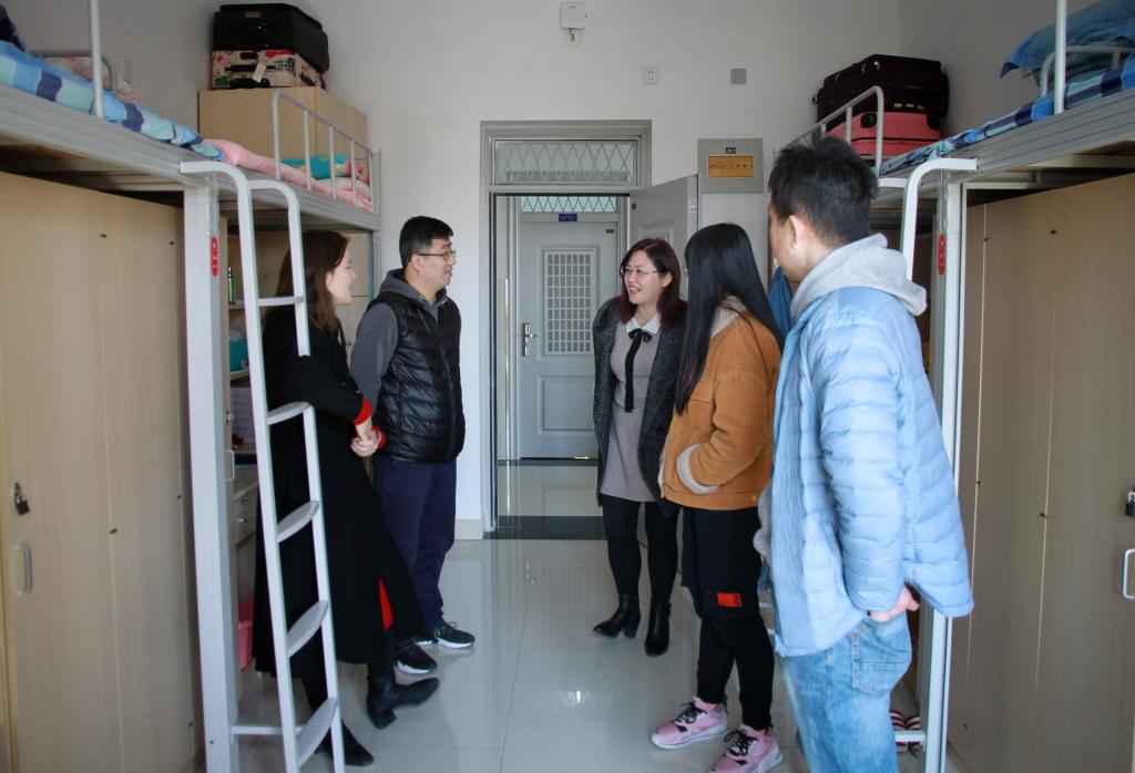 学生的生活环境,并与学生进行了亲切的交谈。张院长深入了解学生的生活情况和思想状态,并就如何合理安排学习时间、营造积极健康的宿舍文化等问题与同学们进行了交流。同时对宿舍的安全问题做出强调,要求学生提高宿舍安全意识,尤其是加强用电安全的管理,做到人走灯闭电源关,杜绝安全隐患。