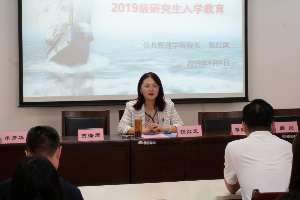 在燕山校区4407举行了2019级研究生新生入学教育暨与院领导见面会。党委书记李国强、院长张红凤,党委副书记周炎、吕晓燕,副院长贾海彦,MPA中心副主任牟芳华,辅导员李昭娜以及2019级全体研究生出席此次会议,会议由副院长贾海彦主持。