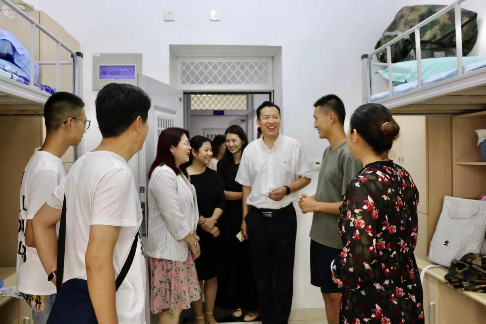 迎新工作的感受时,表示:“老师们都非常关心学生,志愿者们都非常热情细心,整体感觉非常棒,孩子在这里上学我很放心。”