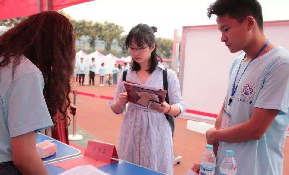 预迎新开始,新生陆续来到八号教学楼进行报到。14日下午至15日,正式迎新于圣井校区东南操场进行,新生报到量激增,迎新工作达到第一个高潮。尽管工作繁忙,志愿者们仍为每一位新生送上最灿烂的笑脸,热情地引导新生们办理每一项报道手续,耐心地回答学弟学妹们的每一个问题。