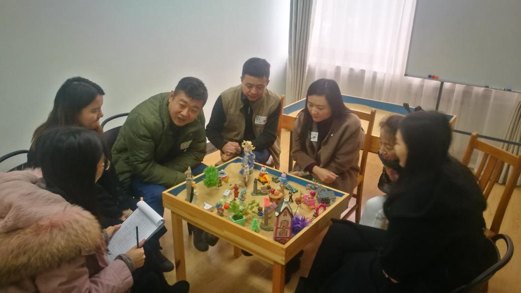 学生工作团队共同参与沙盘活动。一粒沙是一个世界,反映着智者的思考和智慧,沙盘中展现出美妙的心灵花园,则是沙盘游戏治疗的生动意境。团体沙盘活动使成员在游戏中有效宣泄消极情绪、释放压力。同时,也促进了团体协作能力、团体凝聚力。
