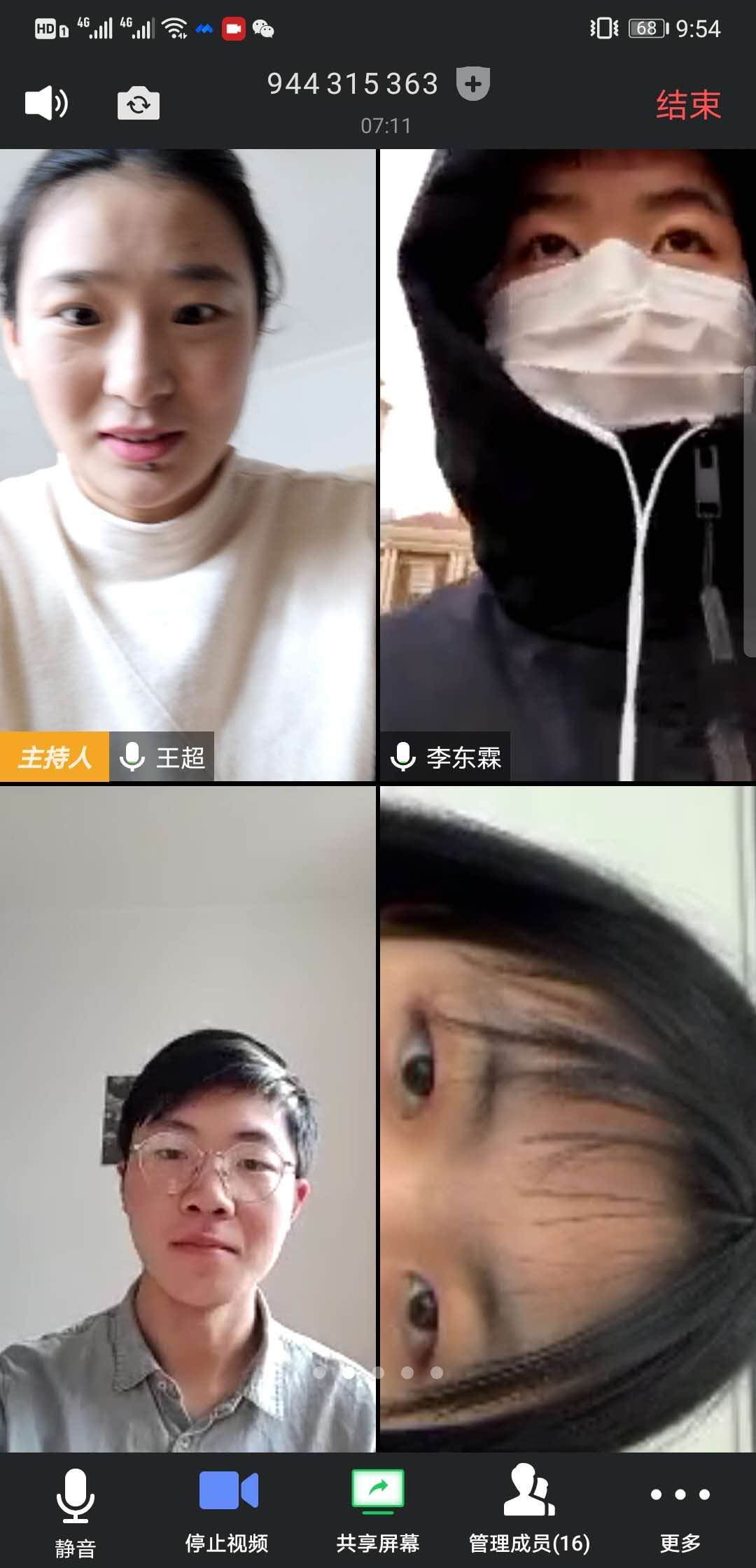 2019级辅导员王超采取视频会议模式,对大一新生第一次期末考试成绩进行了总体分析,要求同学们在新学期网课学习中能够尽快适应,调整学习方式方法,做好时间管理,养成良好作息习惯。班会最后,王老师回答了近期同学们普遍关切的问题,并鼓励同学们,克服困难,利用好这段特殊的时间充实自己,确定目标任务,做好大学生职业生涯规划,潜心求学、提升自己。