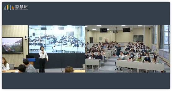 学生和塔里木大学学生处在现代化的远程直播互动智慧教室里,通过“智慧树”远程直播互动调度系统,根据课堂教学需求即时切换两校课堂画面,塔里木大学的学生不仅能实时听到课程内容,还能举手发言,与MX动漫