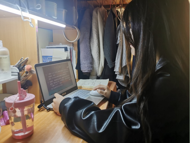 张老师不仅在专业知识上倾囊相授,还关心同学们的心理健康与课余生活,叮嘱同学们在积极配合防疫工作的同时,利用多种方式舒缓焦虑心情,多读书,适量运动。疫情无情人有情,危难之时显初心,从三尺讲台到摄像头前的“新主播”,从宽阔明亮的教室到四四方方的屏幕,一起“云上课”的日子里,“网课”成为张老师与同学们共同奋斗的代言词。