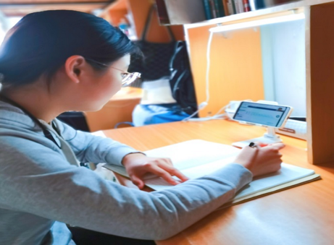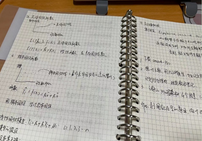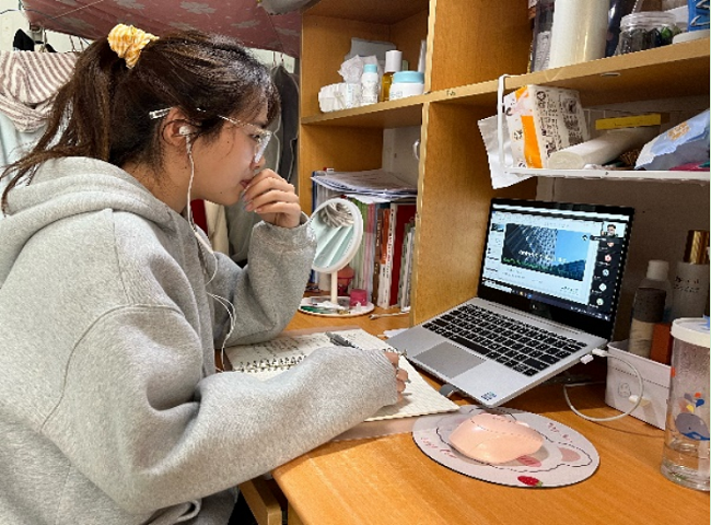 宏观经济学“线上课堂”模式让同学们的学术见解得到了交流与碰撞,科研思维与科研能力不断强化,同学们认真记录学习内容。