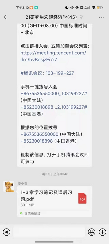 上课前,姜琪老师提前预定好腾讯会议,确保上课时间。下课后,姜琪老师给同学们分享课后习题及笔记,确保学习效率。