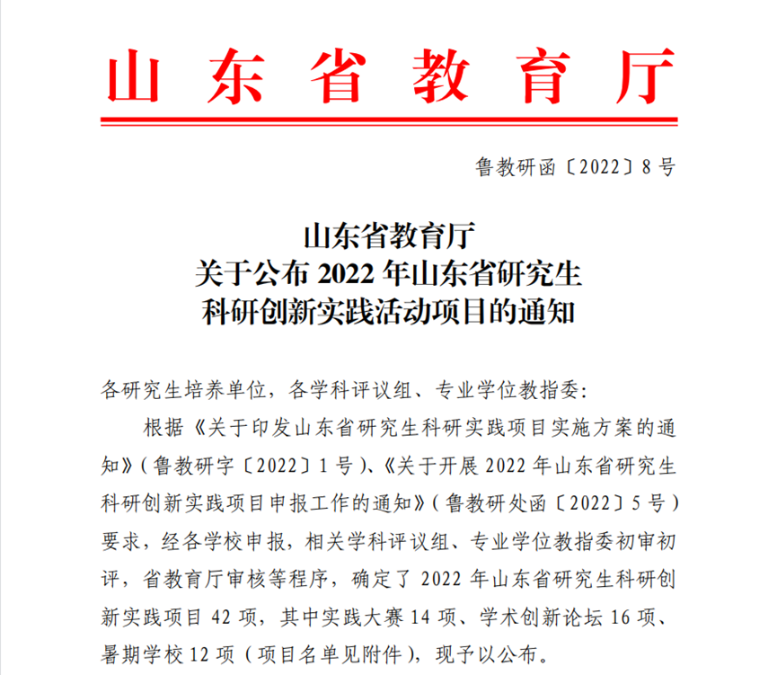 近日,山东省教育厅公布了2022年山东省研究生科研创新实践活动项目立项通知(鲁教研函〔2022〕8号)。MX动漫
