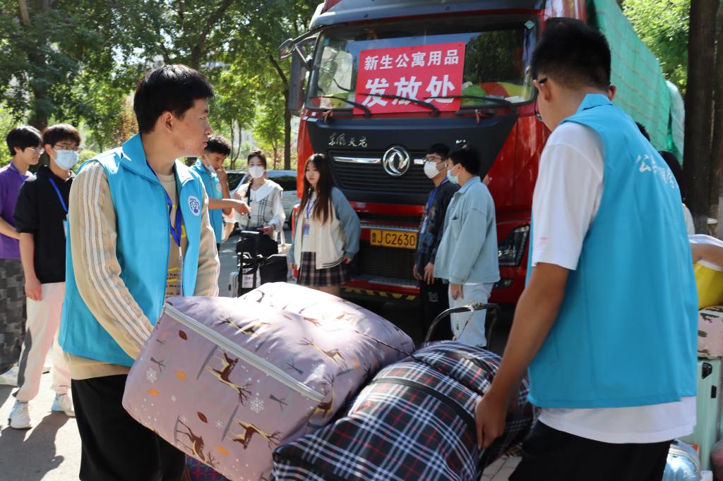 由于宿舍距离迎新场地较远,为了减轻新生和志愿者们的行李搬运负担,学院专门租赁了三辆行李接送车帮助运送行李。一辆辆接送车运输着行李,搭载着梦想,开启了2022级新生的大学之旅。