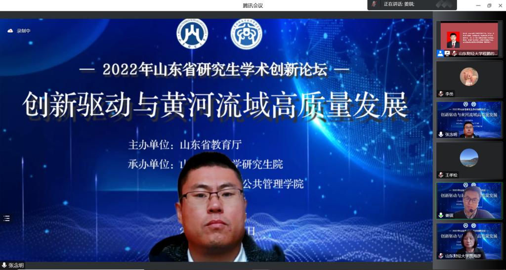 山东省研究生学术创新论坛是山东省研究生科研创新实践项目的组成部分之一。该项目面向服务国家和我省重大战略和经济社会发展需求,通过搭建研究生学习、交流、竞技平台,引导研究生培养单位深化人才培养模式改革,推动研究生教育优势资源共享,拓宽研究生学术视野,不断增强研究生使命感、责任感,切实提高研究生科研创新和实践创新能力,全面提升高层次人才培养质量。本次论坛的举办对实现公共管理、理论经济学、应用经济学、工商管理、法学等学科与国家黄河流域高质量发展战略更好地对接发挥将积极作用。