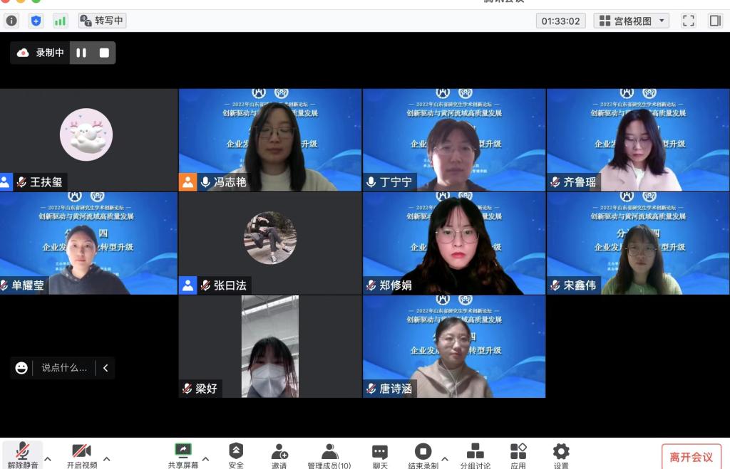 本次论坛设置了四个分论坛,与会专家及研究生围绕“创新驱动与高质量发展”“绿色低碳与生态保护”“宏观政策与区域协调发展”“企业发展与产业转型升级”等主题进行了充分地探讨和交流,开拓了研究视野,丰富了“创新驱动与黄河流域高质量发展”领域研究成果。