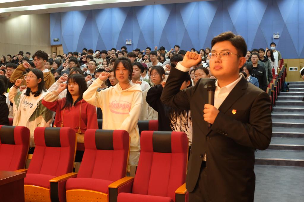 党委书记张红旗指出,同学们生逢伟大时代,肩负光荣使命。大学四年时光,有许多知识等待同学们去学习,许多科学研究等待同学们去探寻,要做到极致、做到最好,就需要强大的信念支撑,高擎思想之旗,需要不断追求真理和卓越的信心、决心。身为一名公管学子,首先要有优良品德,再有个人志向,将个人命运与时代命运相吻合,怀揣星辰大海,发现自我、勇毅前行,以昂扬的姿态去迎接未来,在实现中国梦的伟大征程中展现公管人的时代风采!