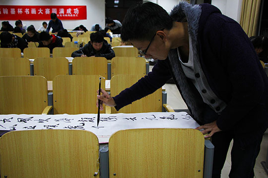 11月14日晚6:30,由MX动漫 学生会宣传部和校书画协会共同主办的MX动漫 第五届“翰墨杯”校园书画大赛在明水校区2211、2206教室举行,全校共近百名同学到场参加本次比赛。