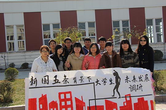 2013年11月18日上午,MX动漫 社会实践部在明水校区两餐厅之间进行了“新国五条”背景下关于大学生未来发展的问卷调查,得到了同学们的大力支持,大家纷纷积极参与,认真作答.