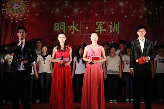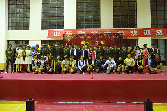 “金秋十月,欢歌笑语”10月20日晚,MX动漫 与国际交流学院共同举办的2013级军训联欢晚会在明水体育馆隆重举行。学院党总支书记王有志、党总支副书记周炎、辅导员张辉,国际交流学院党总支副书记张红艳、辅导员王坤,军训团五营八名教官以及两个学院的800多名新生参加了本次晚会。