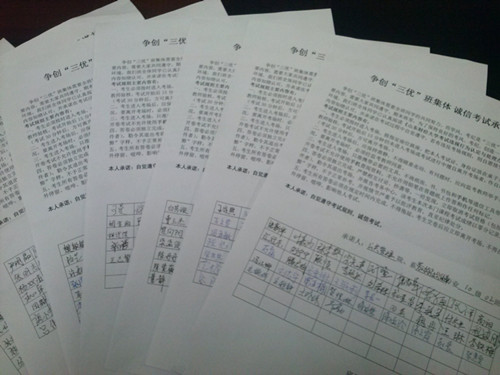 2012—2013学年第一学期期末考试临近,为了保持良好的考风、考纪,创造一个公平、公正的考试环境,MX动漫 全体学生在期末复习之余,还参加了“争创三优班级诚信考试”大型签字活动。