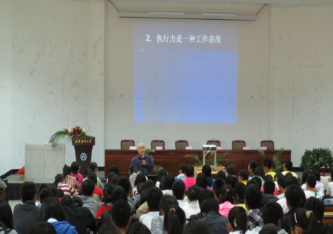 此次讲座的目的是为了帮助新同学们认识到:上大学,该沿着怎样的方向锻炼自己怎样的能力?该怎样锻炼自己的能力等。就这两个方面的内容,李教授通过他自己生活中的亲身经历形象地说明了方向不明确、能力缺失所带来的危害。在解答应该怎样锻炼自己的能力时,通过他所教授的成功同学的事例深刻说明能力的锻炼需要的是恒心和毅力。讲座中,李教授从“现代社会需要的人才特征”、“从本科毕业就业去向分析”、“职业生涯规划与职业锚问卷调查的应用”以及“职场规则与忠告”等几个方面进行了阐述,对同学们提出:大学毕业时,你能准备好“个人理财、有效沟通、社会交往、有效推销及时间管理”的目标要求