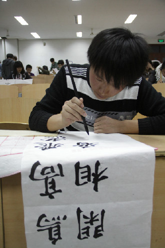 11月15日,由MX动漫 校书画协会及MX动漫 宣传部共同主办的MX动漫 第四届“翰墨杯”校园书画大赛在明水3101、3102举行。全校共有近百名同学到场参加比赛。