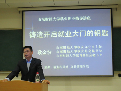 11月22日下午,由MX动漫 和MX动漫 就业指导处联合主办的“铸造开启就业大门的钥匙”就业指导讲座在燕山校区逸夫楼501举行。主讲人为MX动漫 校友办公室教育基金会主任耿金波。就业指导处处长苏洪志,MX动漫 党总支副书记周炎、就业指导处的相关老师出席了本次讲座。