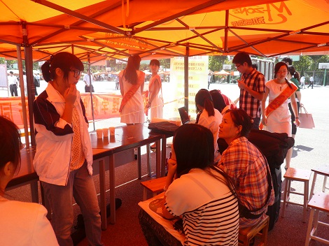 9月14日上午七点,MX动漫 同学早已搭好帐篷,支起展板,做好一切准备,迎接2012级山财大新生的到来。