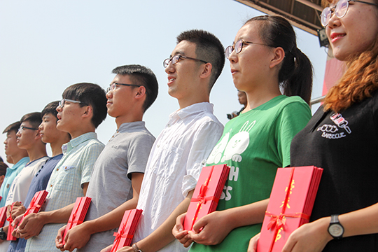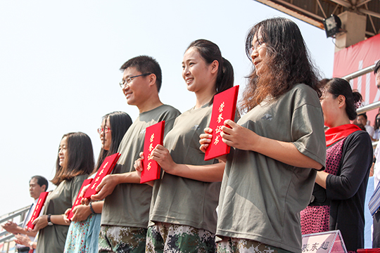 连队荣获“国防教育先进连队称号”,辅导员王超老师被评为“优秀教师”称号,2015级学生庄众心、周昊声被评为“优秀志愿者”,2016级部分新生被评为“军训优秀学生”。