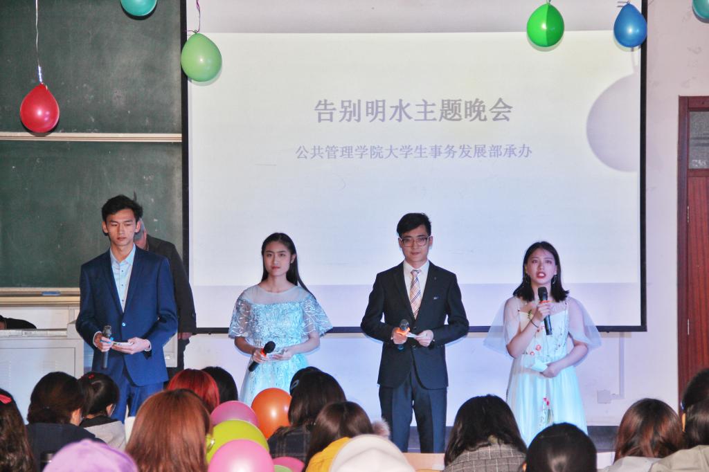 学生会大学生事务发展部主办的告别明水晚会于晚六点半在明水校区4201隆重举行。现场布置精美,节目精彩动人,互动游戏丰富有趣,台下观众反响热烈。让受邀参加的17、18级学生留下一段美好的回忆。