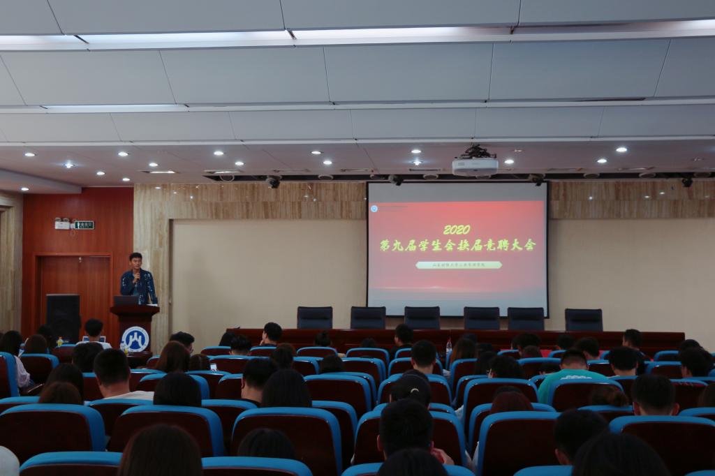 第九届学生会换届竞聘大会于圣井校区5106教室举行。学院党委副书记吕晓燕、辅导员张辉、李旭日、王超,第八届学生会主席团成员、各部门副部长以及全体学生会干事出席了此次大会。