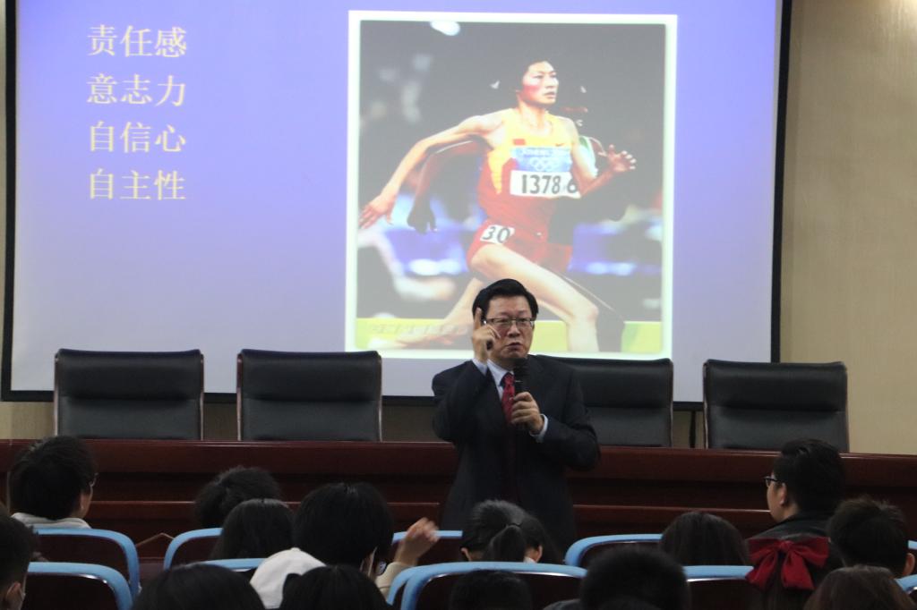 接着,李永刚教授对“大难兴邦,挫折练人”进行了生动讲解。李教授通过实例告诉同学们挫折能增强耐受力,逆境体验是成功的重要内容;列举周文王、司马迁等人的故事告诉同学们挫折是强者的进身之阶,弱者的无底之渊。