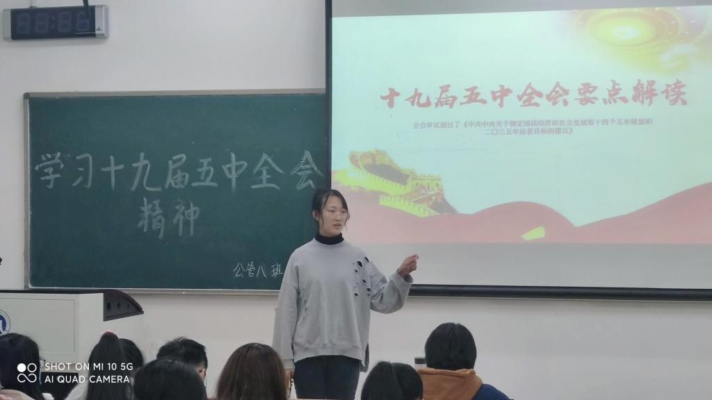 结合“青年大学习第十季特辑”学习十九届五中全会精神主题团课,各团支部积极收集相关资料,在团会上采用放映PPT、播放视频、展开讨论、抢答题目等形式,深入学习了全会精神,共同探寻了这份历史交汇点上的宏伟蓝图。党的十九届五中全会充分肯定了党的十九届四中全会以来中央政治局的工作;高度评价了决胜全面建成小康社会取得的决定性成就;深入分析了我国发展环境面临的深刻复杂变化;提出了到二〇三五年基本实现社会主义现代化远景目标以及“十四五”时期经济社会发展指导思想、主要目标和“五个坚持”重要原则;号召全国各族人民要紧密团结在以习近平总书记为核心的党中央周围,团结一心,顽强奋斗,夺取全面建设社会主义现代化国家新胜利。