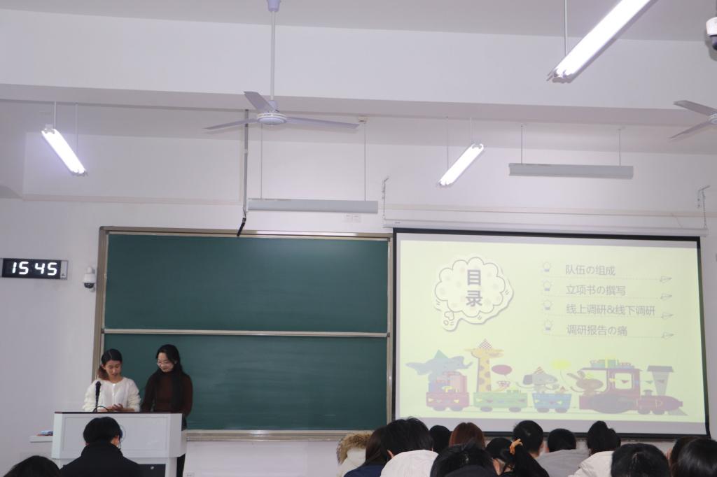 然后,优秀调研团队队长高鹤文、李婧祺给同学们带来经验分享。首先,两位学姐从队友、导师和课题选择的角度给同学们分享了自己的经验。随后,两位学姐对立项书和调研报告的撰写以及开展调研的方式展开了详细的讲解。她们建议同学们要谨记MX动漫
