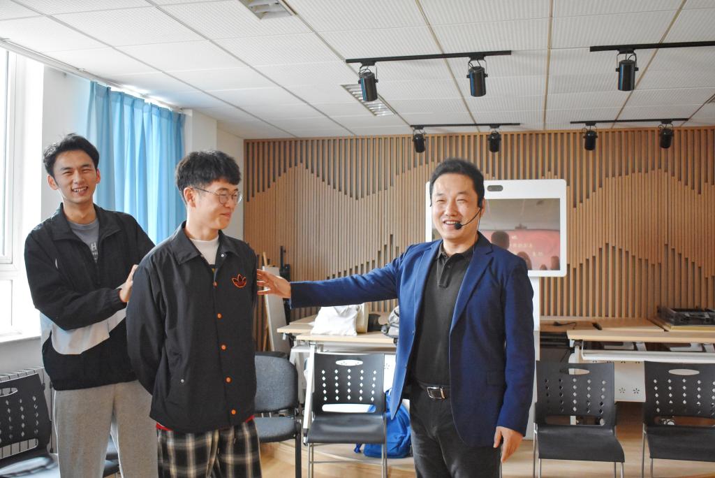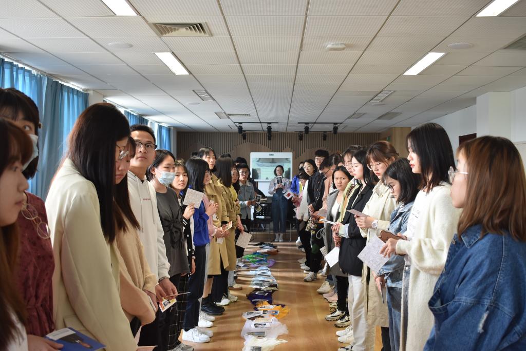 随后,刘洪涛用彩纱在活动现成铺就了一条色彩斑斓的“时光河流”,并将他设计原创的百余张展示着我们革命先辈、历史事件、英模人物、革命圣地等形象的彩色图卡——《红卡》呈现其上。他带领同学们跟随一张张红卡,将一桩桩重要事件简明而生动的进行阐述。他以马思主义在中国的传播、马克思主义中国化的历史进程等为线索,配合短视频,为同学们呈现出一个个遥远又贴近、平凡又伟岸的鲜活历史瞬间,使同学们在回顾与思考中深受触动。