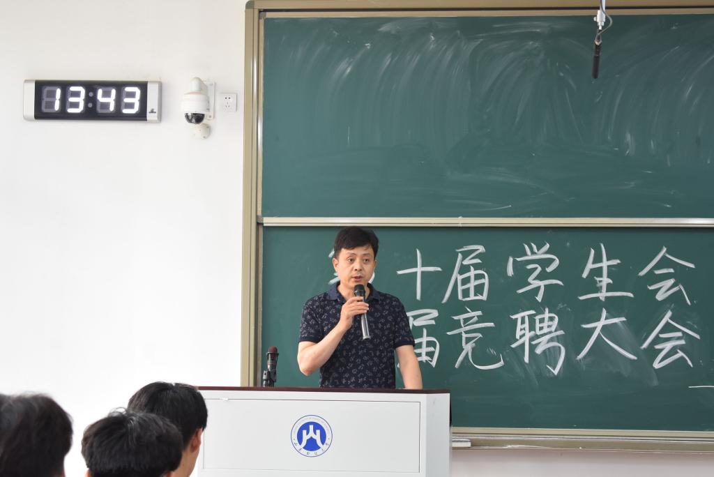 第十届学生会换届竞聘大会于圣井校区8210教室顺利召开。会议由院学工办主任、学生会秘书长张辉主持,院就业办主任、2018级辅导员李旭日及2020级辅导员韩步彤出席,第九届学生会全体成员参加会议。