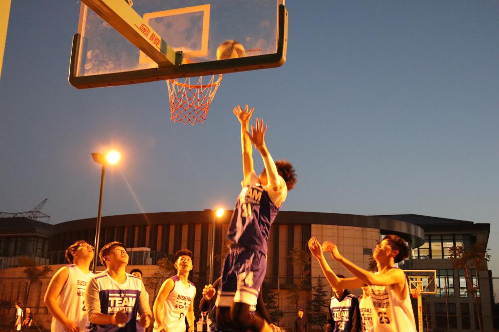 第二场由B组同D组进行比拼。夕阳西下,夜幕降临,丝毫未褪去参赛队员的热情,相反每一位队员都势如破竹,精神百倍。赛场上D组吾拉木同学披荆斩棘,勇往直前,带领D组成员成功突破B组成员的围追堵截,B组成员也逞而不让,紧紧咬住比分。最终D组以62:54获胜。