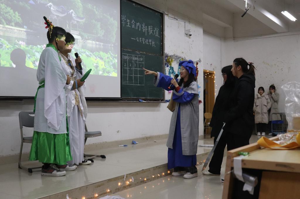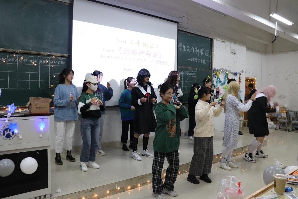 此次联谊晚会,除了精彩纷呈的节目表演之外,各个环节中还穿插了各类小游戏,如歌曲接龙、部门蹲等。接着,纪检部的舞蹈串烧《不过是大梦一场空》、大学生事务发展部与生活卫生部的联袂出演的小品《亮剑》、文艺部的歌舞串烧《顶流女团》相继上演,获得全场观众的一致好评。
