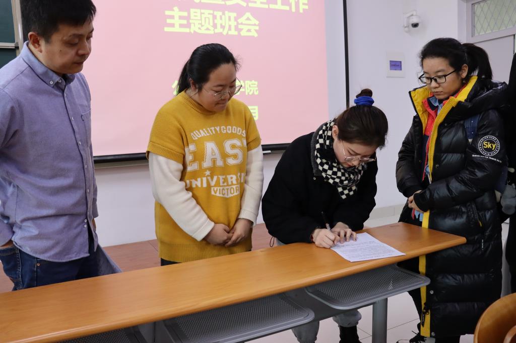 最后,全体学生签署考试承诺书,会议到此结束。希望全体学生在期末考试中端正考风,严肃考纪,向学校交上一份诚实的答卷,也为己过往的一年交上一份满意的答卷!