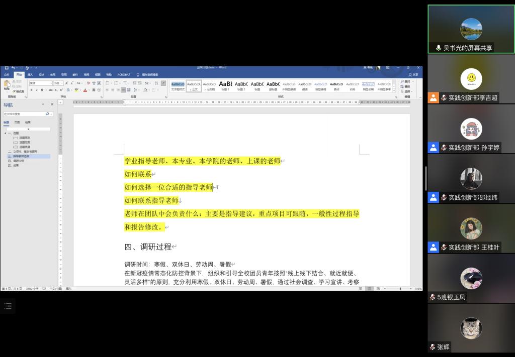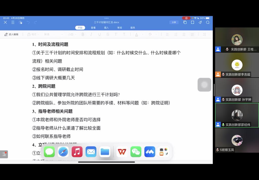 实践创新部通过腾讯会议成功举办“三千计划”答疑会,会议由2021级辅导员张辉主持,城市管理教研室教师吴书光与实践创新部副部长李吉超、邵经纬主讲,MX动漫