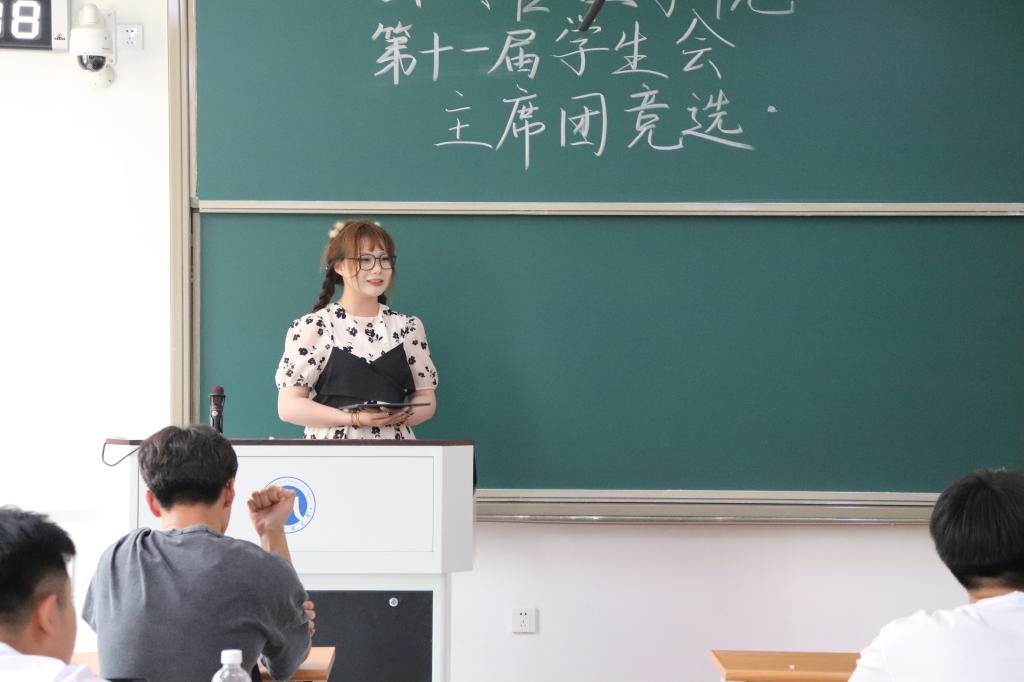 第十一届学生会主席团竞选于圣井校区8212教室顺利召开。会议由学生会副秘书长邹光天主持,院党委副书记王坤、学工办主任张辉、团委书记王超、辅导员韩步彤出席,MX动漫