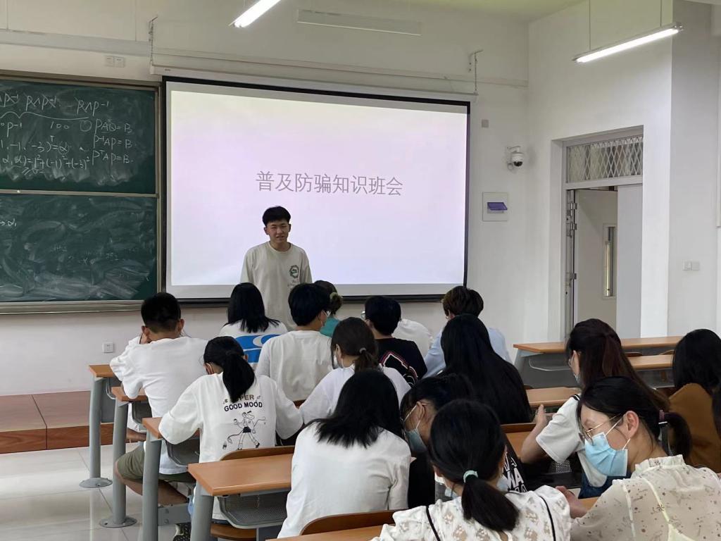 学生以班为单位先后开展了分析典型诈骗手法、普及防骗知识的班会。各班班团通过一些真实案例对典型的诈骗手段进行了分析,总结了典型的诈骗套路,并为同学们普及了防诈骗的知识,增强了同学们的防范意识。