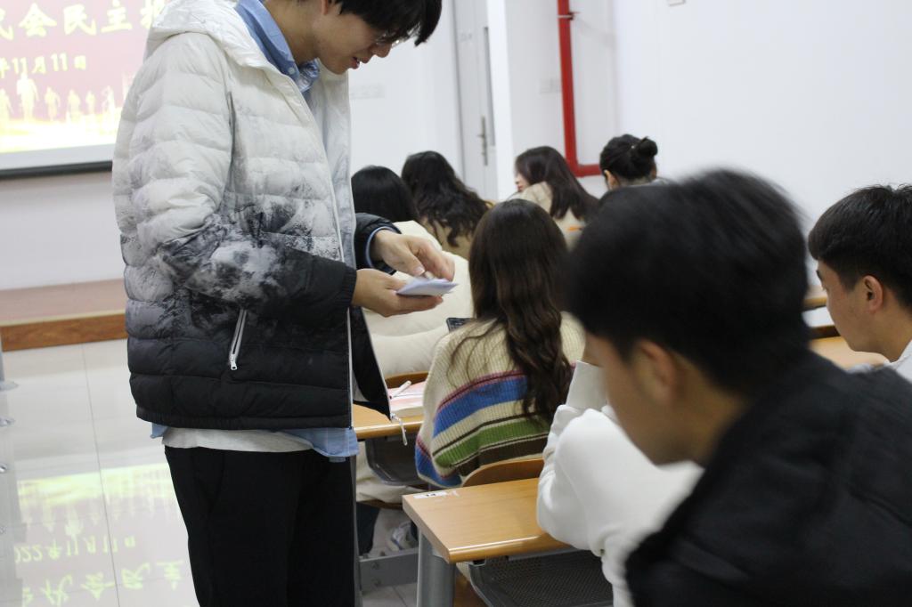 会议伊始,陈佳凝宣读了本次学代会民主投票大会的指导思想、主要议程、候选人情况、选举办法及选票填写说明。随后,现场学生代表秉承公平、公正、公开的选举原则,采取无记名差额投票选举方式,严肃思考、慎重选择,认真庄严地填写选票。