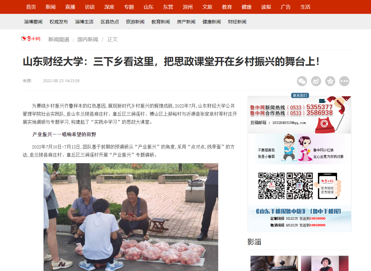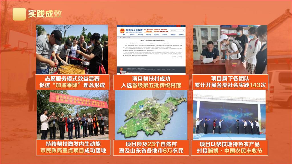团委的支持下,组建23支团队,走进山东省16个地市的农村基层,采访1700余名党员干部群众,形成近20万字文字材料以及10余项特色思政实践成果,被人民网、齐鲁晚报、山东教育新闻网等知名媒体报道百余次。同时,项目团队依托暑期三下乡活动积极开展校际合作,吸纳山东大学、山东理工大学、青岛大学等12所高校百余名学生参与。