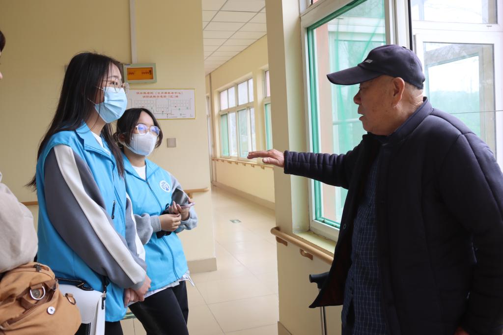 随后,志愿者们自发前往老人们的住处探望老人,同老人们聊天话家常,关心询问老人们的身体健康与生活状况,并帮助老人做一些力所能及的家务事。在此期间,有志愿者向一位爷爷问及他年轻时的经历,爷爷滔滔不绝地讲述起战争的混乱与残酷。他双眼发亮,神情悲愤,仿佛重回那段激情飞扬的青春岁月。