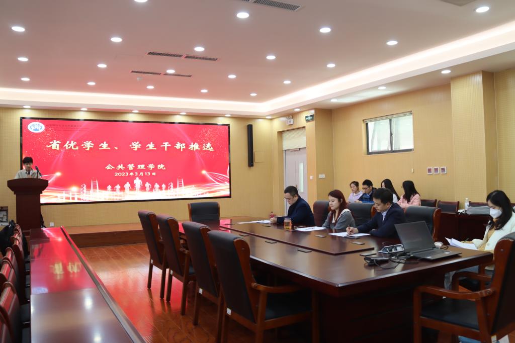 2022年度省级优秀学生、优秀学生干部和先进班集体评选展示活动于3月13日中午在圣井校区8-128会议室举行。张辉、孙开红、韩步彤、张志斌等老师担任评委。