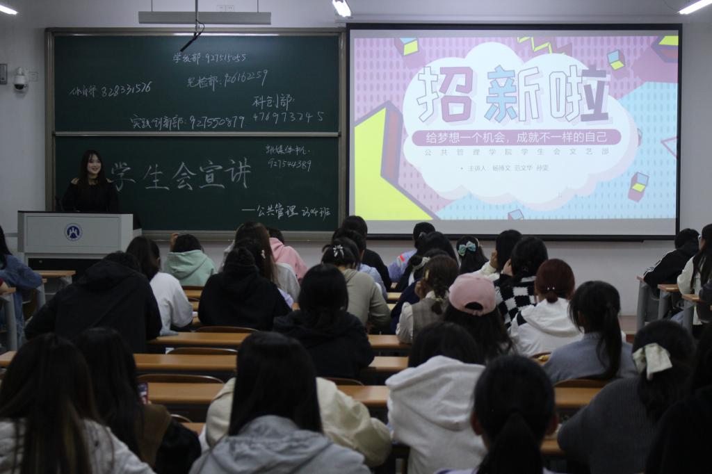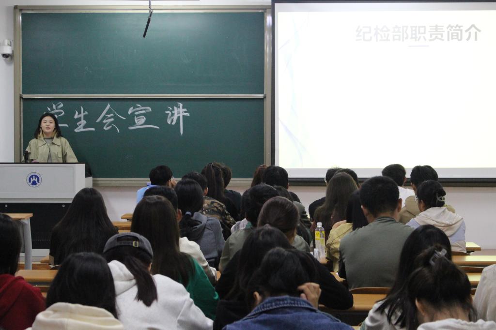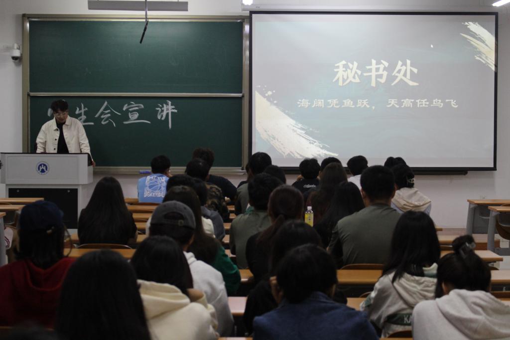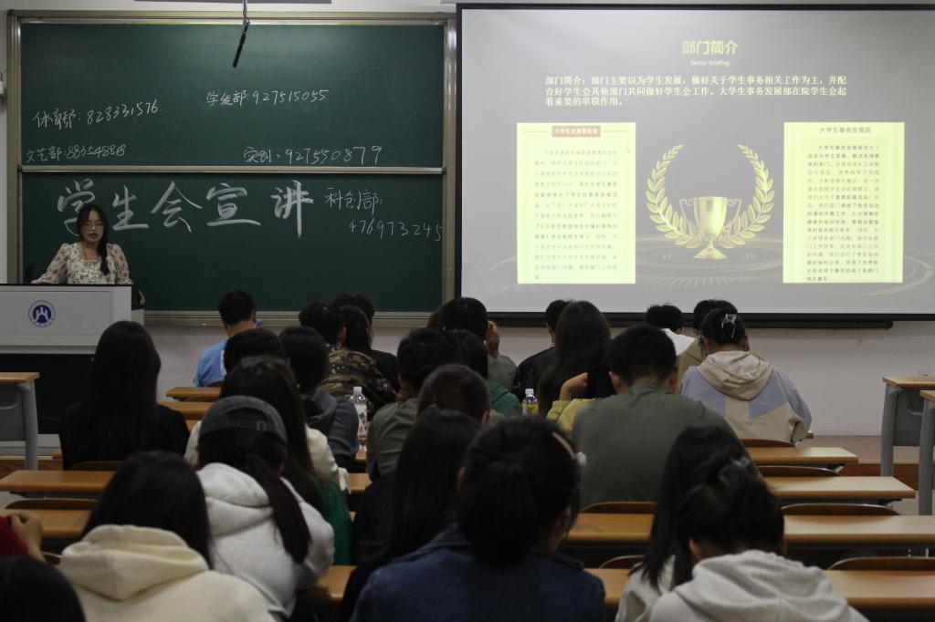 (通讯员 张心仪 摄影 田怡帆)为进一步充实学院学生会队伍,为学院团学组织注入新鲜活力,让2023级新生更充分、更深层次了解学院学生会,9月26日,学院学生会纳新宣讲大会于圣井校区顺利召开。此次会议由学生会主席团成员主持,学生会各部门骨干、新生代班及2023级全体新生参加。